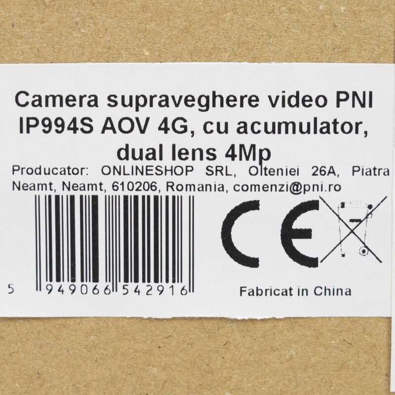 Telecamera di videosorveglianza PNI IP994S AOV 4G, doppia lente 4MP, batteria 10400 mAh, comunicazione bidirezionale, IP66